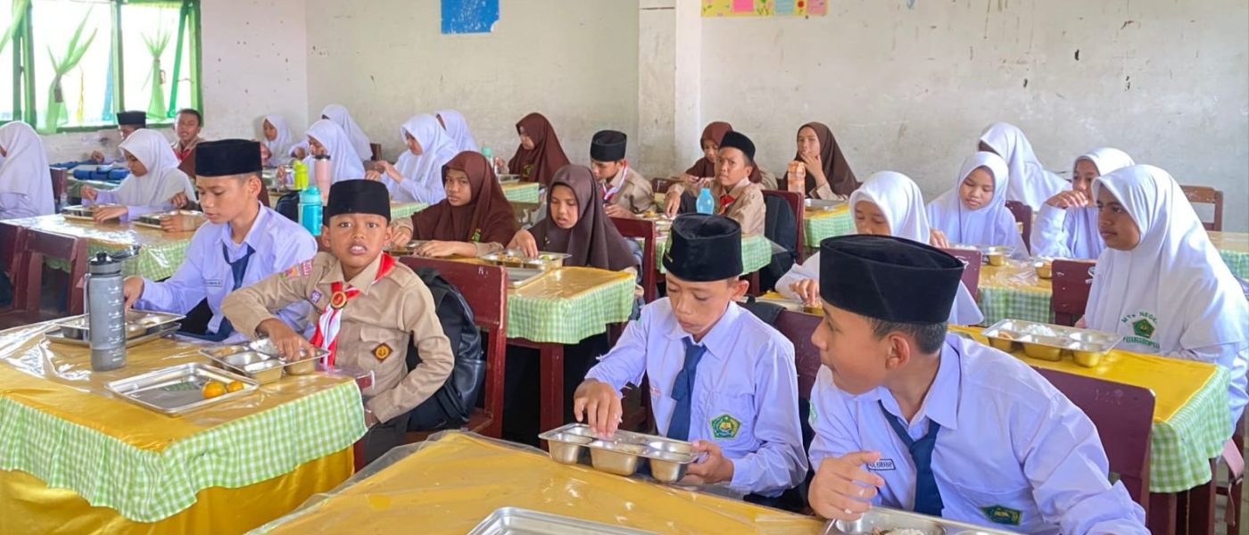 Antusias dan Ceria! Siswa MTsN 1 Padangsidimpuan Nikmati Makan Bergizi Gratis Perdana