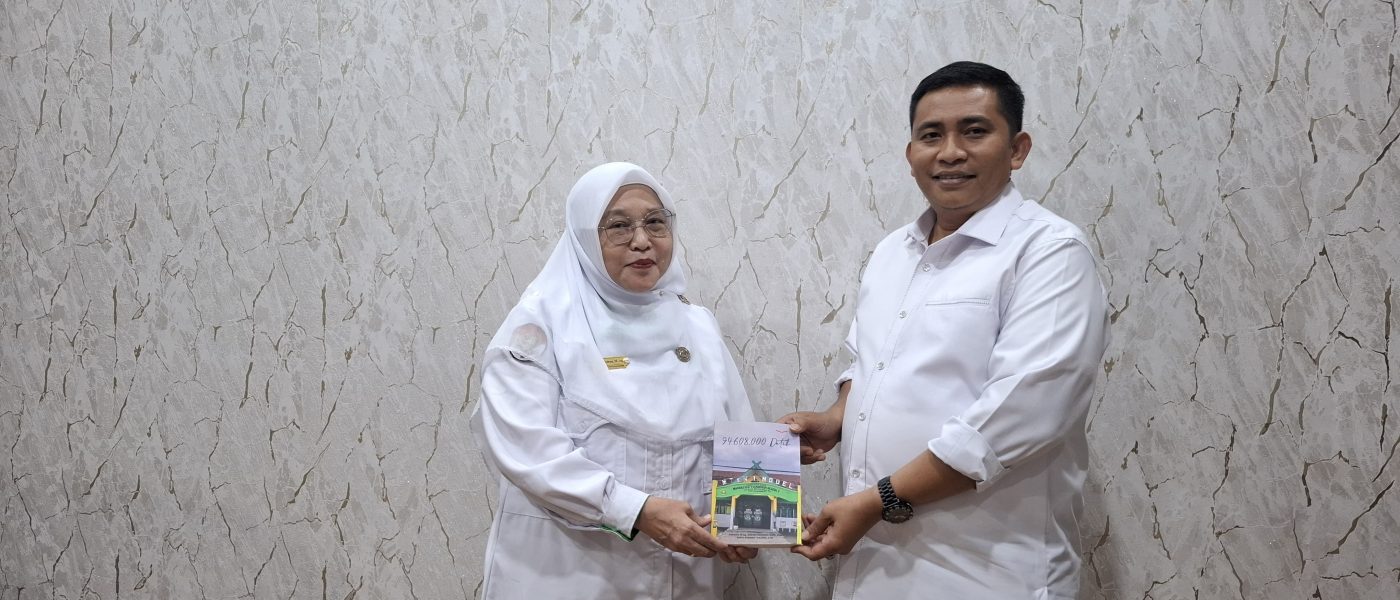 Kepala MTsN 1 Padangsidimpuan Serahkan Buku Karya Bersama kepada Kabid Pendidikan Madrasah Kanwil Kemenag Sumut