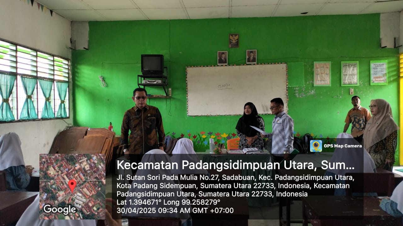 Padangsidimpuan (Humas). Kantor Kementerian Agama (Kemenag) Kota Padangsidimpuan melaksanakan kunjungan monitoring dan evaluasi (monev) pelaksanaan Ujian Madrasah (UM) T.P 2024-2025 di MTsN 1 Padangsidimpuan. Kunjungan ini dipimpin oleh Kepala Seksi Pendidikan Madrasah, H. Zamil Hasibuan, M.Pd didampingi oleh pengawas madrasah, Mara Hamdan, M.Pd pada Rabu, 30 April 2025