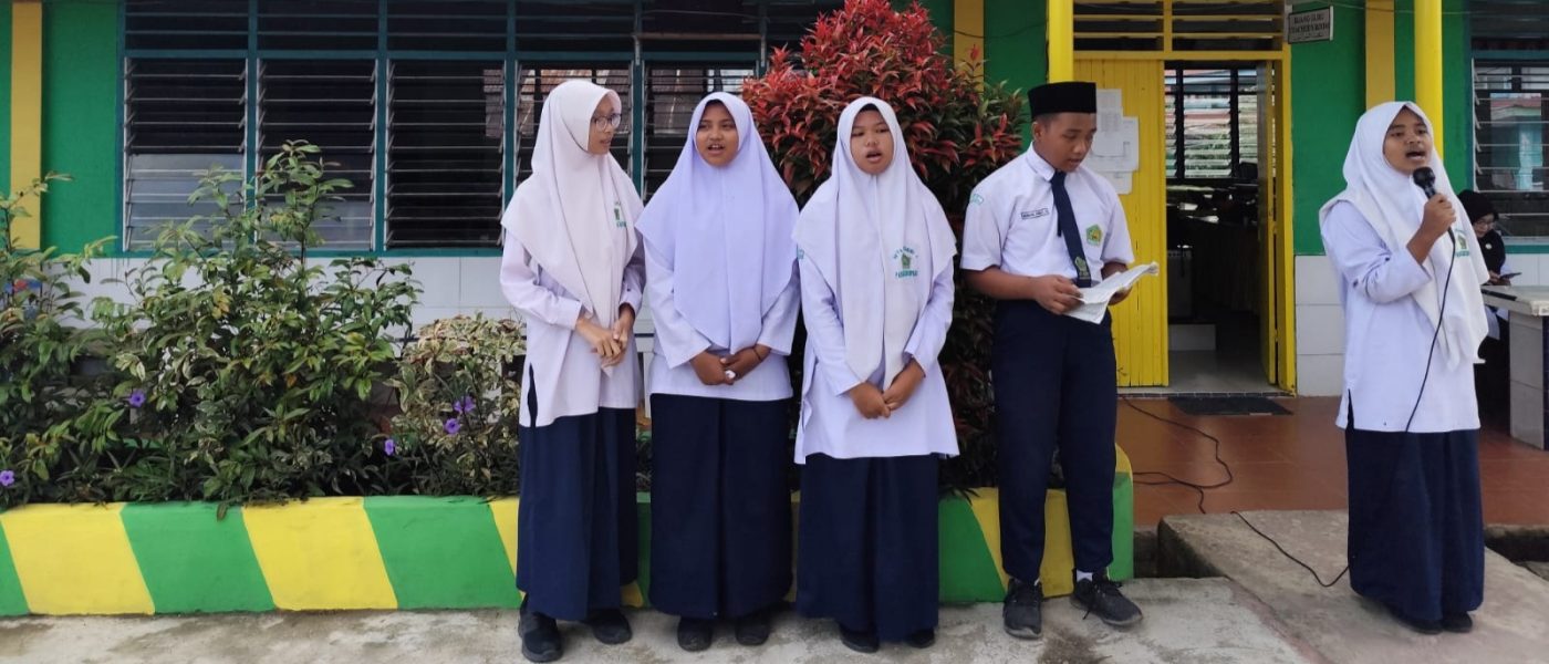 Padangsidimpuan (Humas). Suasana religius dan penuh makna mewarnai apel pagi di MTsN 1 Padangsidimpuan, Selasa (29/07), dengan penampilan syarhil Qur’an bertema Shalat sebagai Tiang Agama. Kegiatan syarhil Qur’an kali ini dibawakan dengan penuh penghayatan oleh siswa-siswi kelas IX-9, yang mengajak seluruh peserta apel untuk merenungkan kembali pentingnya shalat dalam kehidupan seorang muslim.